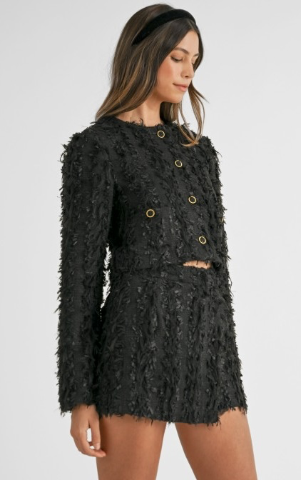 Conjunto de falda y blazer corto.