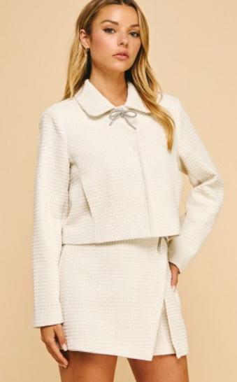 Conjunto pedreria negro short falda con blazer.