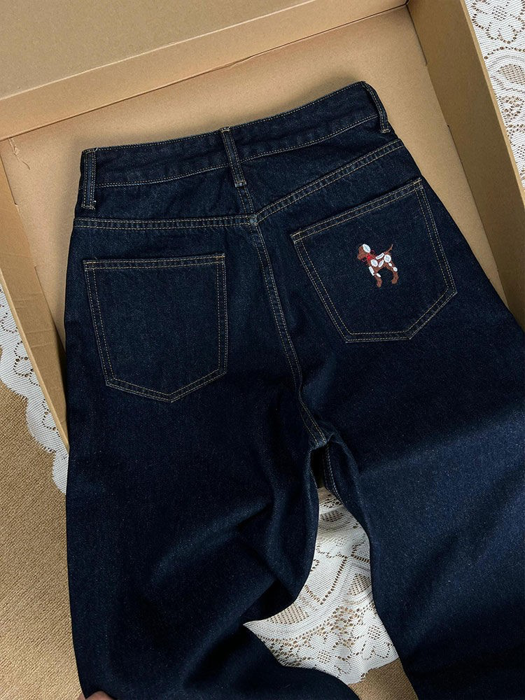 Pantalon de mezclilla con perritos bordados.